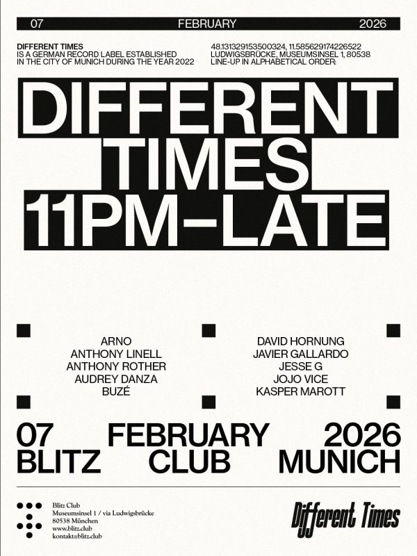 Different Times return to Blitz with the same winning formula: a local, vinyl-only label and crew hosting another expansive session from Saturday night deep into Sunday afternoon, bridging peak-time club energy with a devoted daytime stretch.