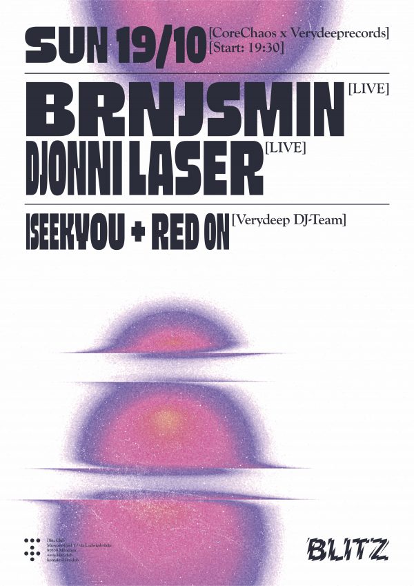 Munich’s underground collective CoreChaos & Nuremberg’s verydeeprecords, two DIY communities searching for new sounds & forms of expression, team up for an evening of fluid electronics, live sets, and listening sessions at Blitz.